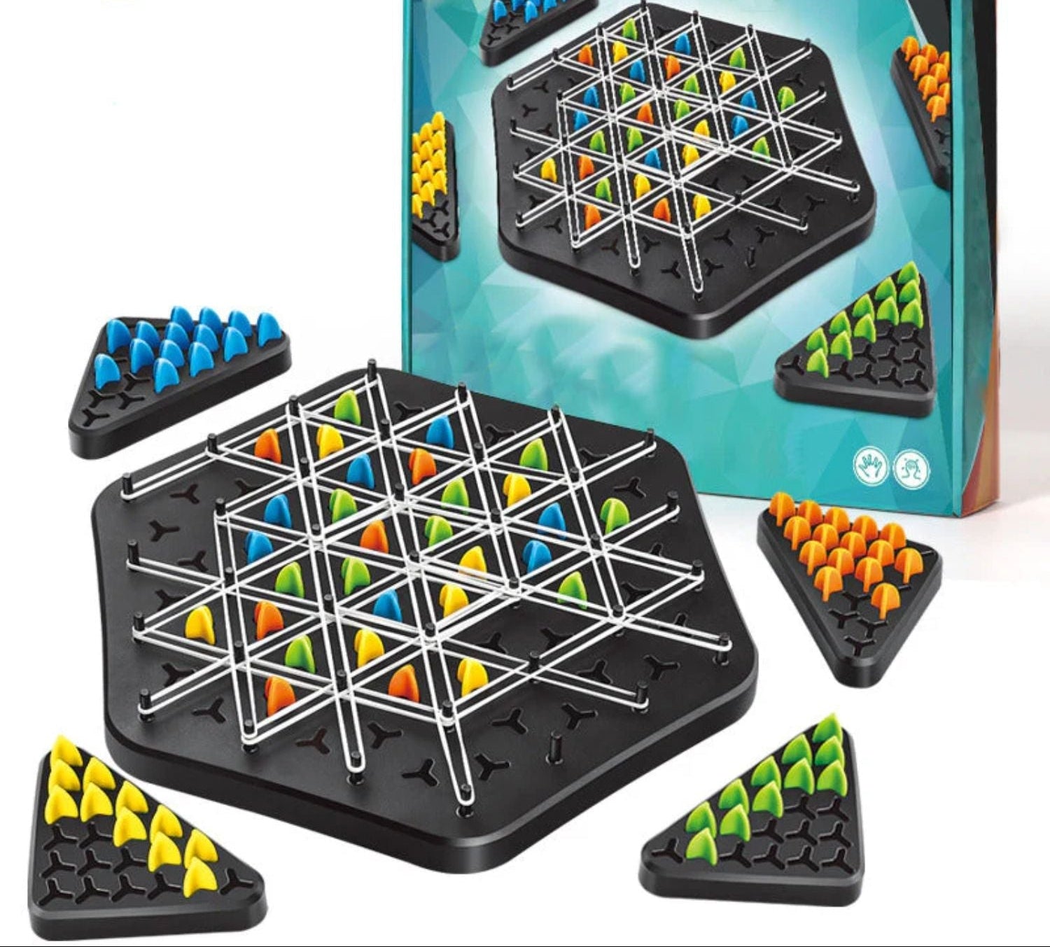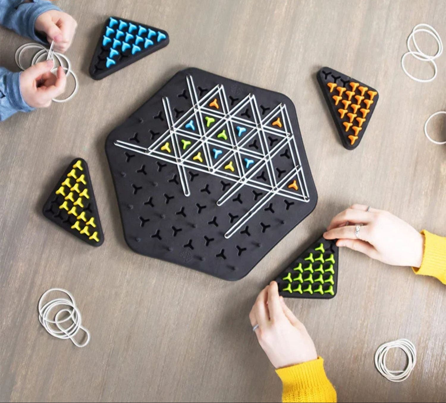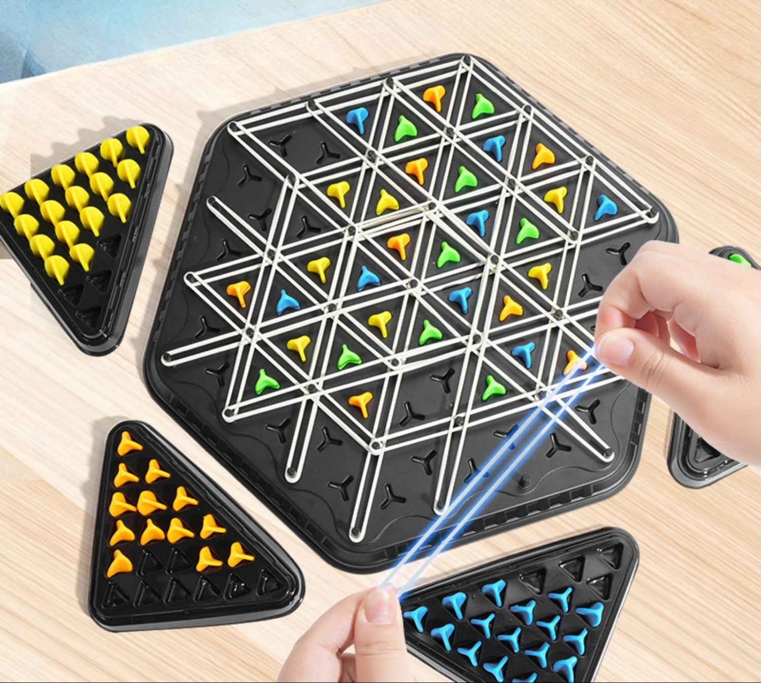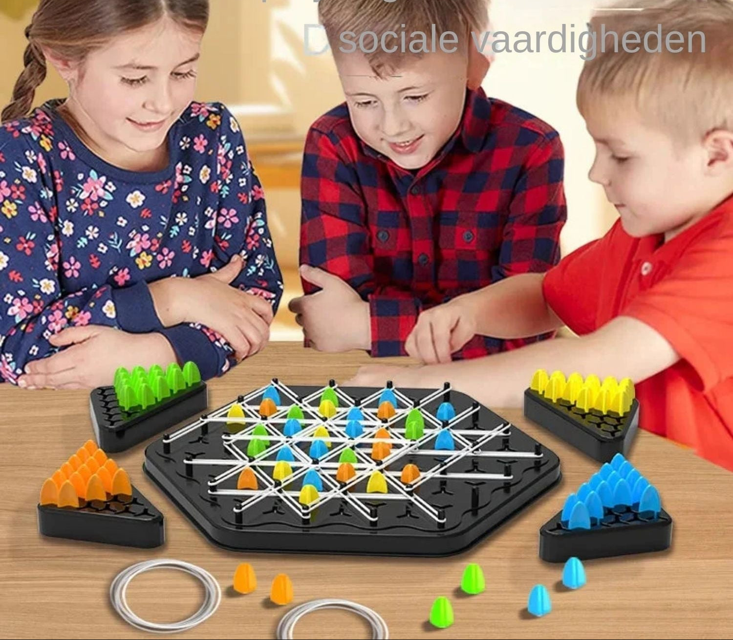 Met zijn innovatieve ontwerp van geometrische vormen en elastieken draait het om snelheid, precisie en strategie. Elke zet test je inzicht en reactiesnelheid – een echte mentale workout voor slimme geesten!
