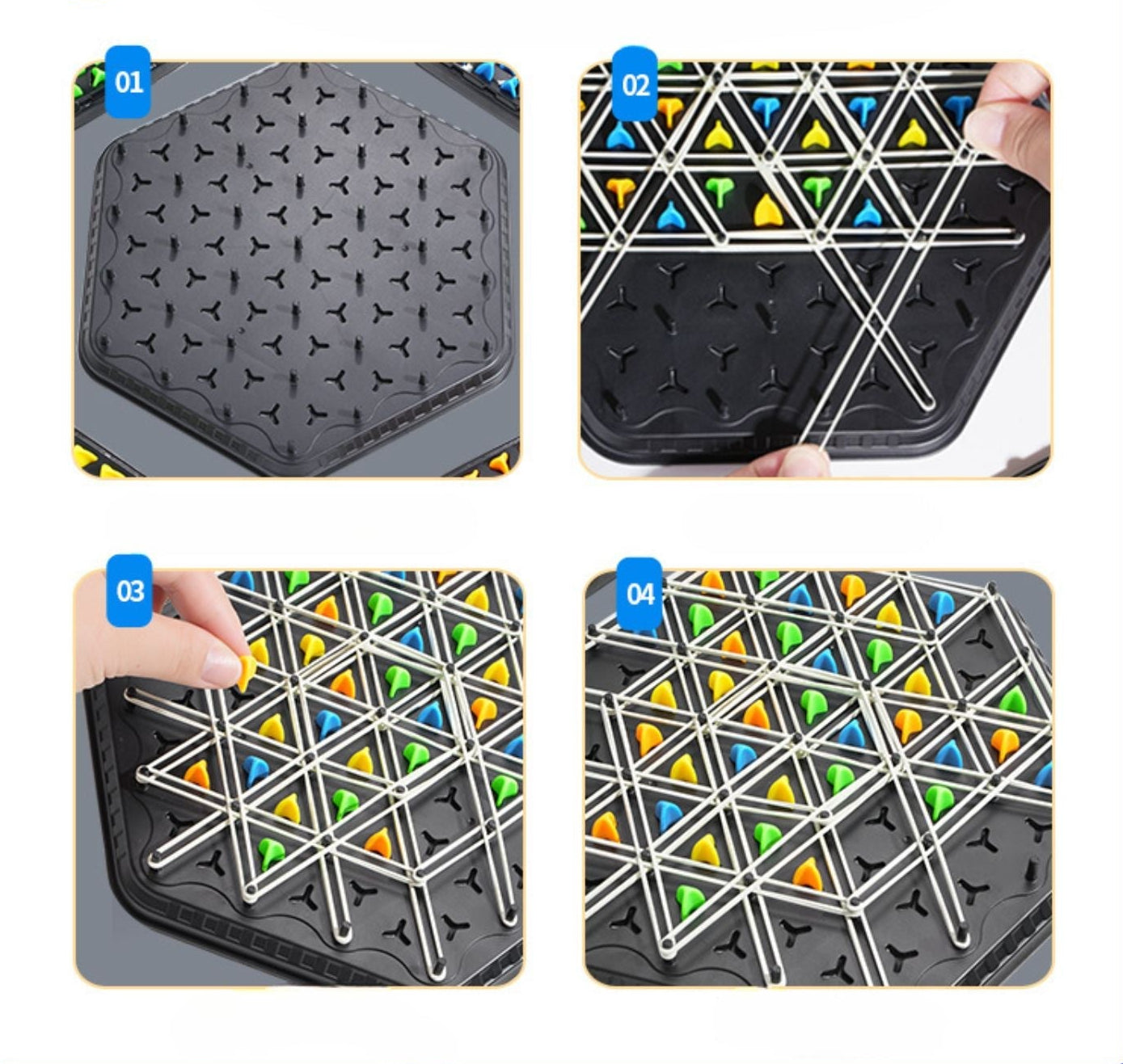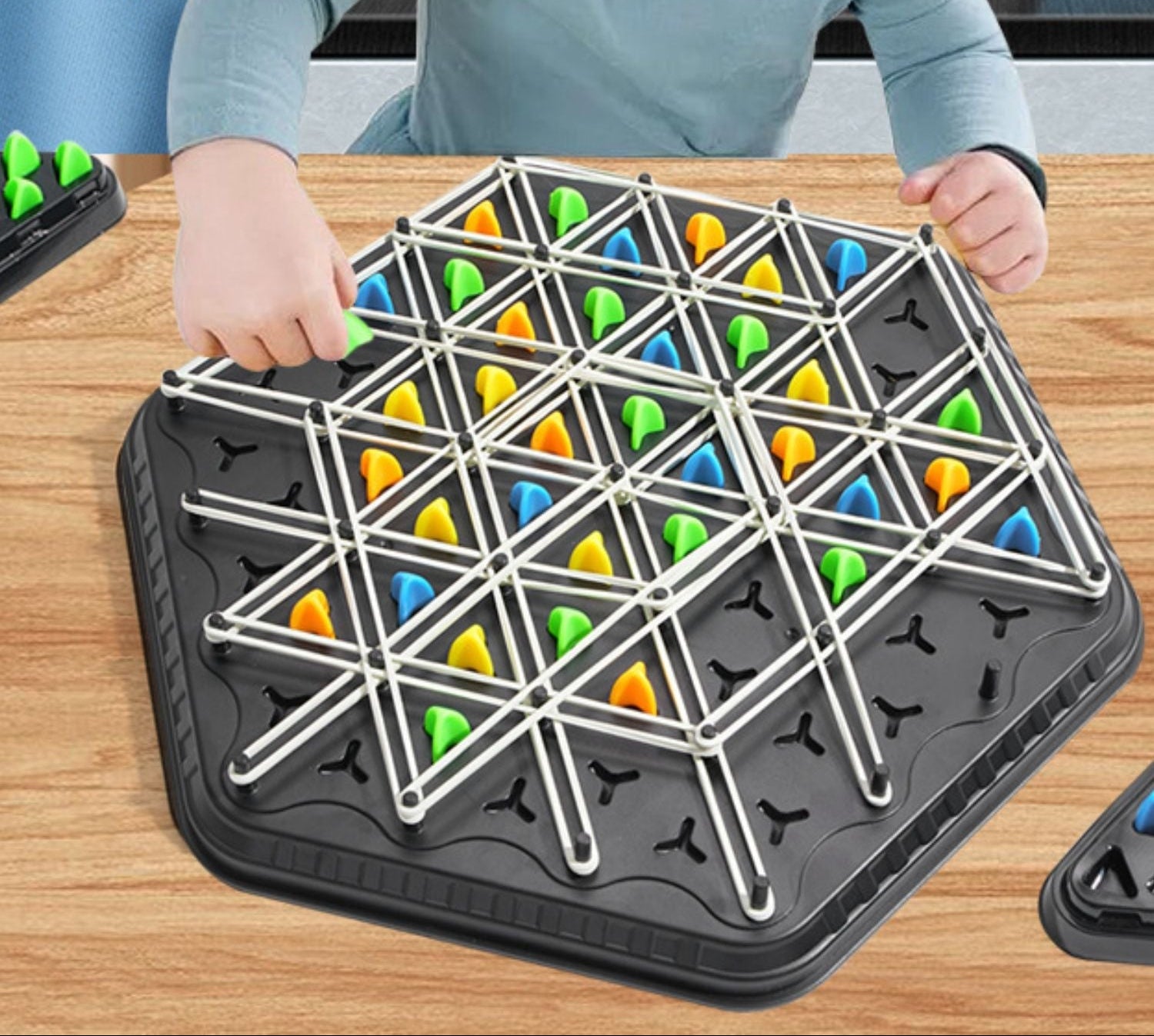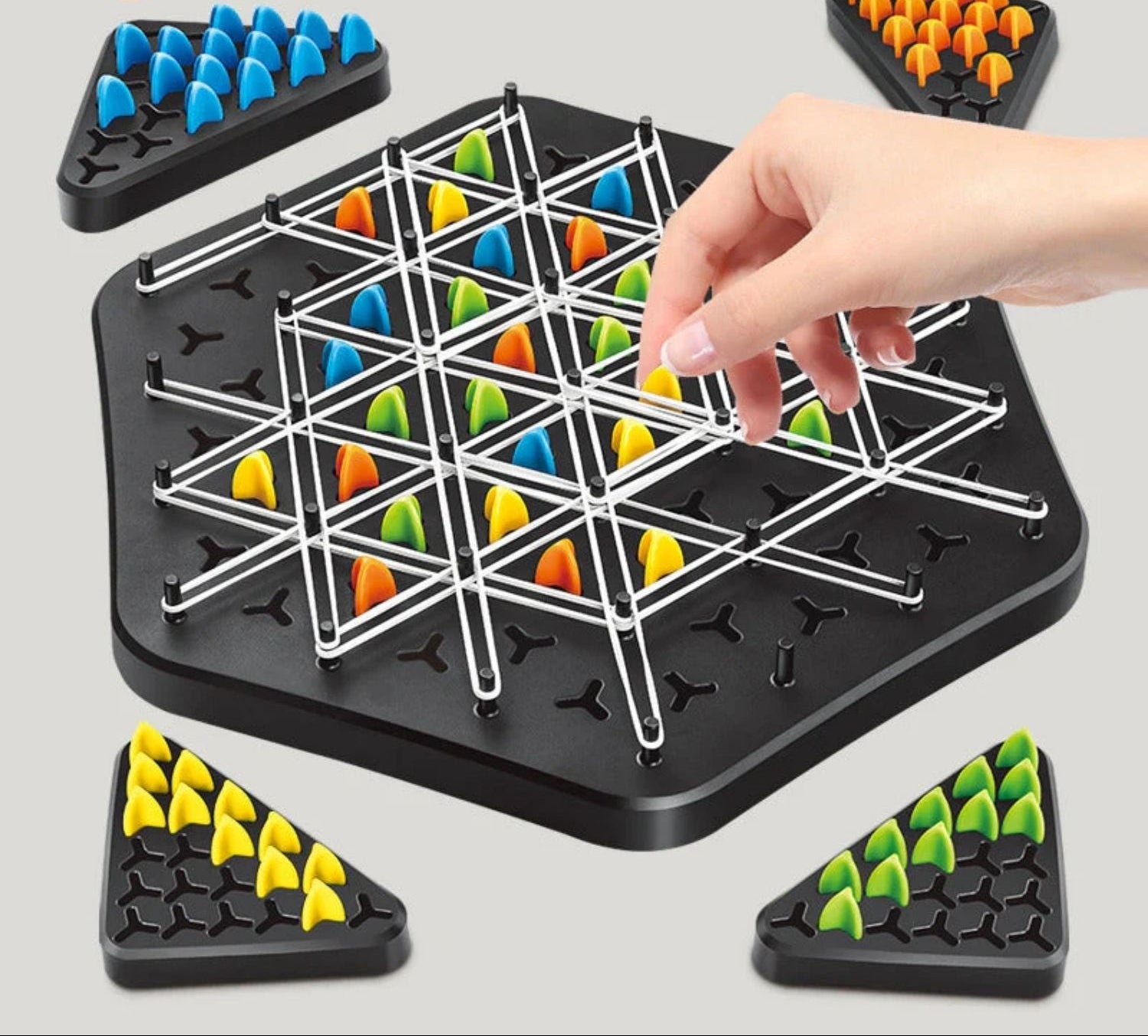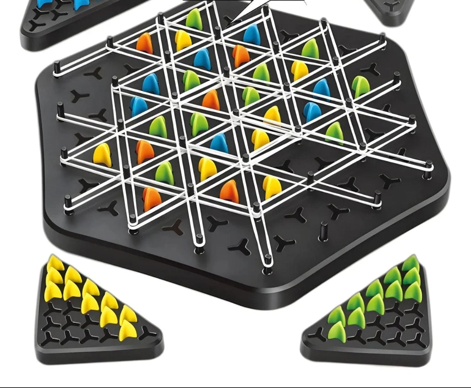 Met zijn innovatieve ontwerp van geometrische vormen en elastieken draait het om snelheid, precisie en strategie. Elke zet test je inzicht en reactiesnelheid – een echte mentale workout voor slimme geesten!