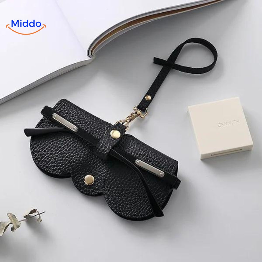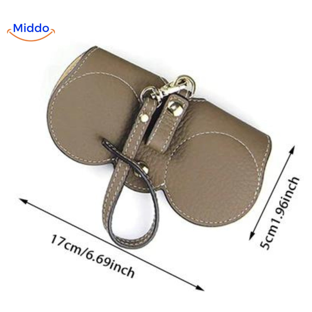 De hoes is voorzien van een stevige metalen drukknop, die het gemakkelijk maakt om je bril veilig op te bergen en snel toegang te hebben wanneer je die nodig hebt.